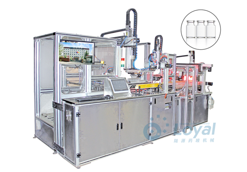 西林瓶生產(chǎn)線(xiàn)包括:自動(dòng)上管、自動(dòng)成型、經(jīng)機(jī)械手轉(zhuǎn)換至前端檢測(cè)線(xiàn)(也叫生產(chǎn)管控)、檢測(cè)線(xiàn)檢測(cè)的項(xiàng)目:1、瓶口內(nèi)外徑 2、瓶身長(zhǎng)短 3、瓶身外徑 4、瓶口邊厚 5、瓶底內(nèi)凹尺寸檢測(cè);經(jīng)檢測(cè)后的合格品再用機(jī)械手夾盤(pán)轉(zhuǎn)換至退火爐網(wǎng)帶上,經(jīng)高溫減除應(yīng)力后再降溫,通過(guò)氣動(dòng)吸盤(pán)將回火后的小瓶轉(zhuǎn)換至后端檢測(cè)線(xiàn),后端檢測(cè)(也是重檢也叫終檢),經(jīng)后端拍照檢測(cè)項(xiàng)目